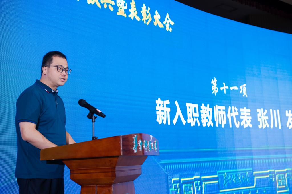 新入职教师代表、体育学院张川老师表达了对学校关怀的感谢及成为第一足球网_188比分直播-官网教师的自豪之情,并表示将会抓住重要机遇、努力提高本领、涵养家国情怀,秉承“求实创新 立德树人”的华师校训和“忠诚博雅 朴实刚毅”的华师精神,努力完成传道授业解惑的本职工作,争做学生为学、为事、为人的“好老师”,成为塑造学生品格、品行、品味的“大先生”,为学校各项事业再上高峰贡献智慧与力量。