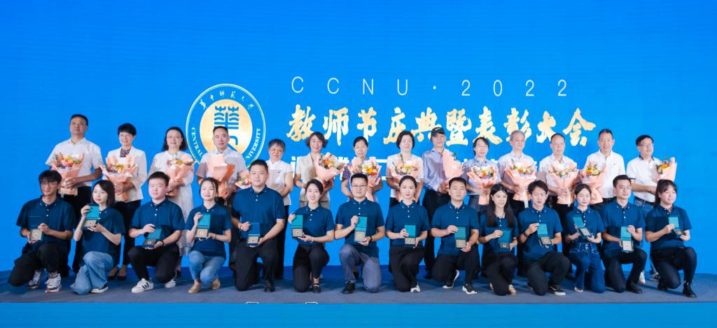 大会表彰了76名从教30年的教职员工、34名从教40年的教职员工、120名荣休教职员工,新入职教职员工代表上台为荣休教职员工献花,荣休教职员工为新入职教职员工代表赠送校徽。大会还表彰了2021年度“校长奖”获得者、楚天园丁奖获奖者、湖北省五一劳动奖章获奖者、荆楚好老师获奖者、第二届全国高校教师教学创新大赛获奖者、湖北省第八届青年教师教学竞赛获奖者、第六届全国教育科学研究成果获奖者、霍英东青年科学奖获奖者。