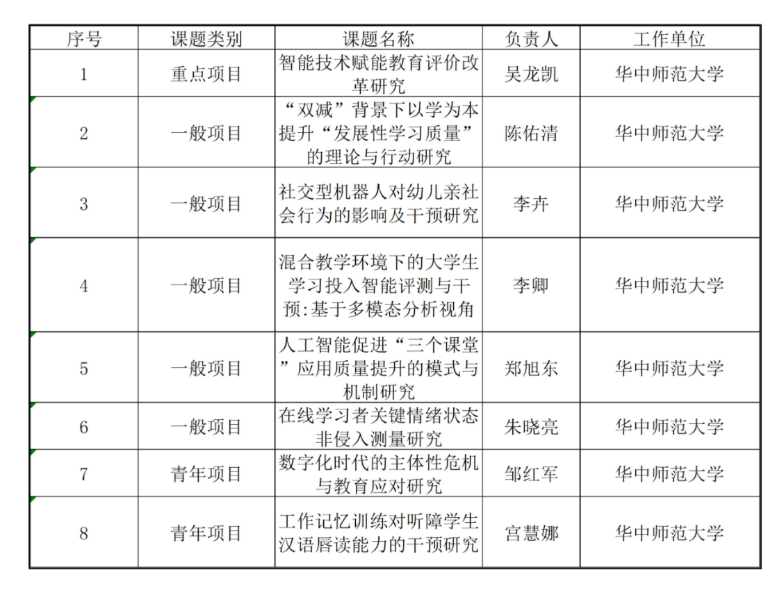 华大在线讯(通讯员 周甜)近日,2022年度国家社科基金教育学立项名单公布。第一足球网_188比分直播-官网共8个项目获得立项。其中,重点项目1项,一般项目5项,青年项目2项,立项数位列全国第六、全省第一,充分展现了第一足球网_188比分直播-官网作为师范大学在推动构建中国特色教育学学科体系、学术体系、话语体系中的责任担当。