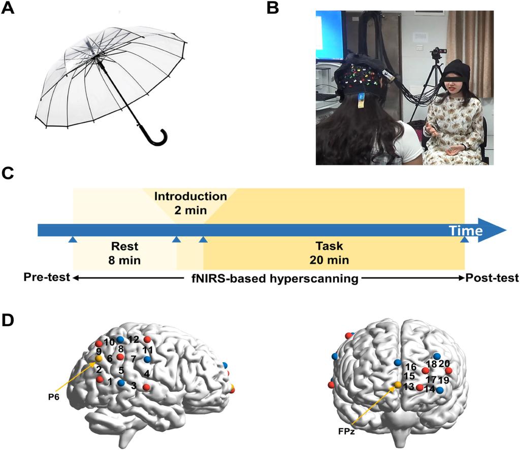 基于长期以来在创造力与认知神经方面的工作基础,赵庆柏教授课题组采用基于功能性近红外光谱成像仪(fNIRS)的超扫描(hyperscanning)技术,从多脑功能整合的视角探究自然交流情境下团体创造任务的独特神经模式。通过衡量创造性任务与非创造性任务(一般任务)的人际神经同步(interpersonal neural synchronization, INS)差异来考察团体创造中小组成员的脑间神经活动特点。